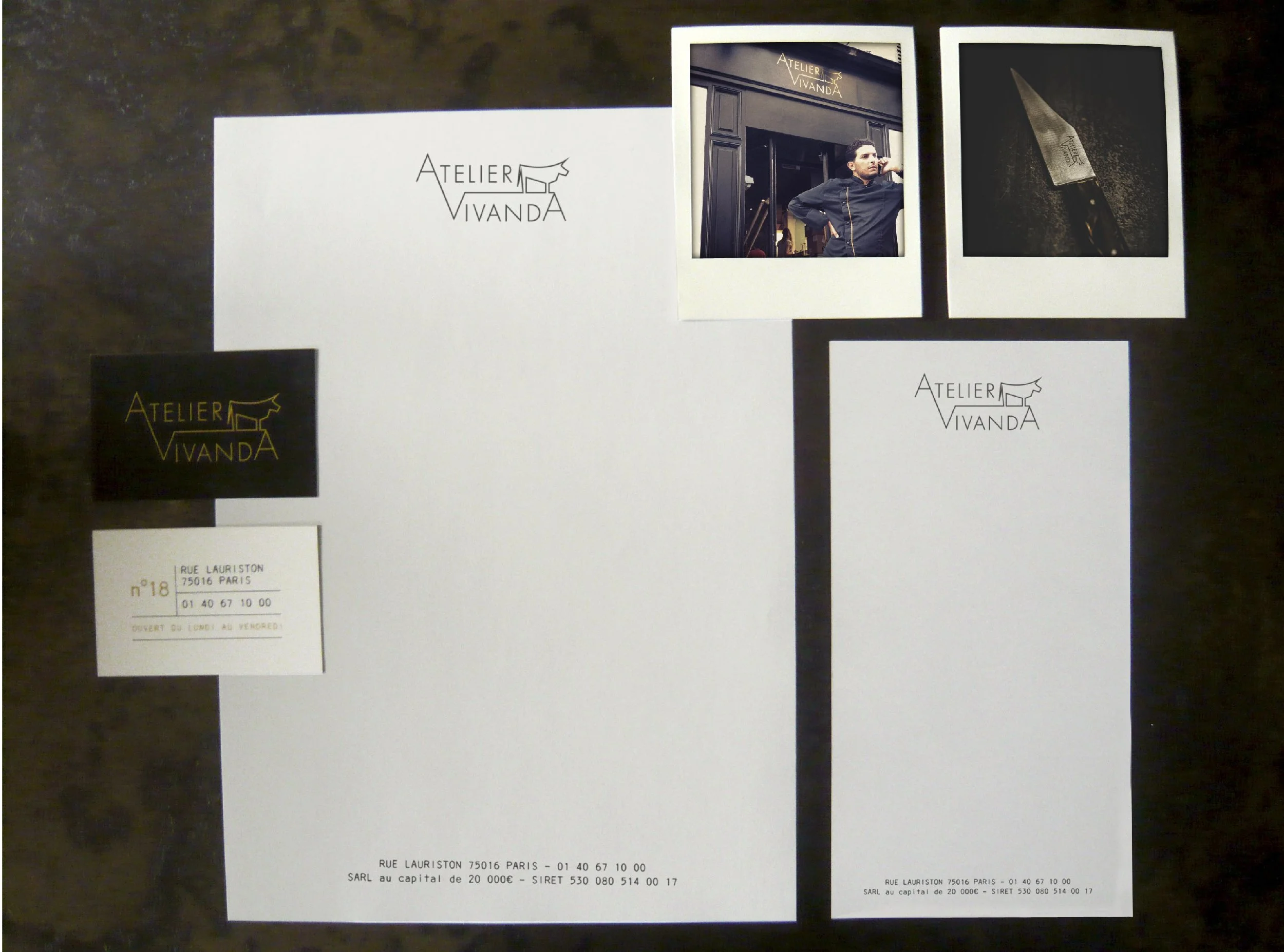 • développement charte graphique (carte de visite, papier en-tête, facturette, devanture restaurant)